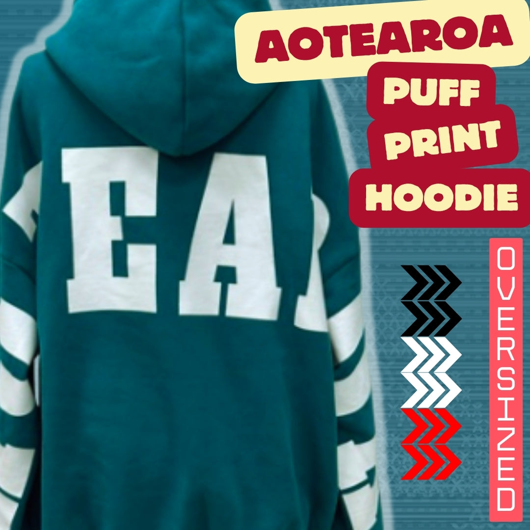 A street wear inspired, oversized hoodie with a super cool large 'AOTEAROA' puff print on the back of the hoodie, with front deep pocket. These top quality hoodies offer a balance of comfort, durability, performance and attitude! See More >>>